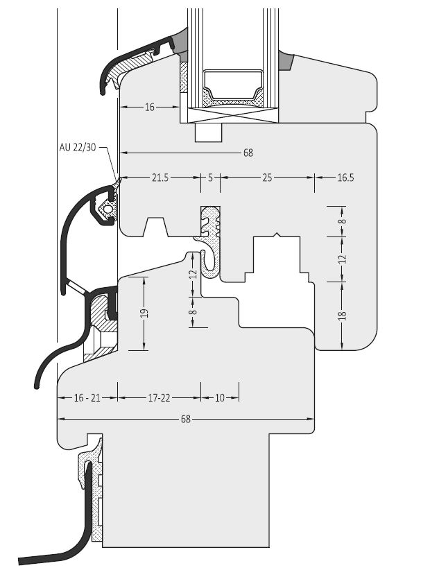 S-7583 TPE tömítő, középen felnyíló nyílászárókhoz