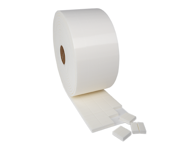Parafa távtartó kockák, egy oldalon enyhén öntapadóak, védőpapírral borítva. Méret: 18 x 18 x 3 mm-es vastagságKiszerelés: 8 tekercs/ karton 10.000 db./ tekercs